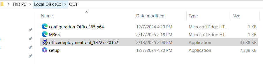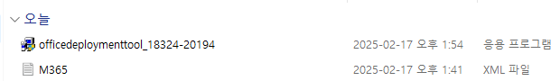 다운로드 된 항목에 Office Deployment tool 과 M365 XML 파일 두개가 있는 것을 확인합니다.