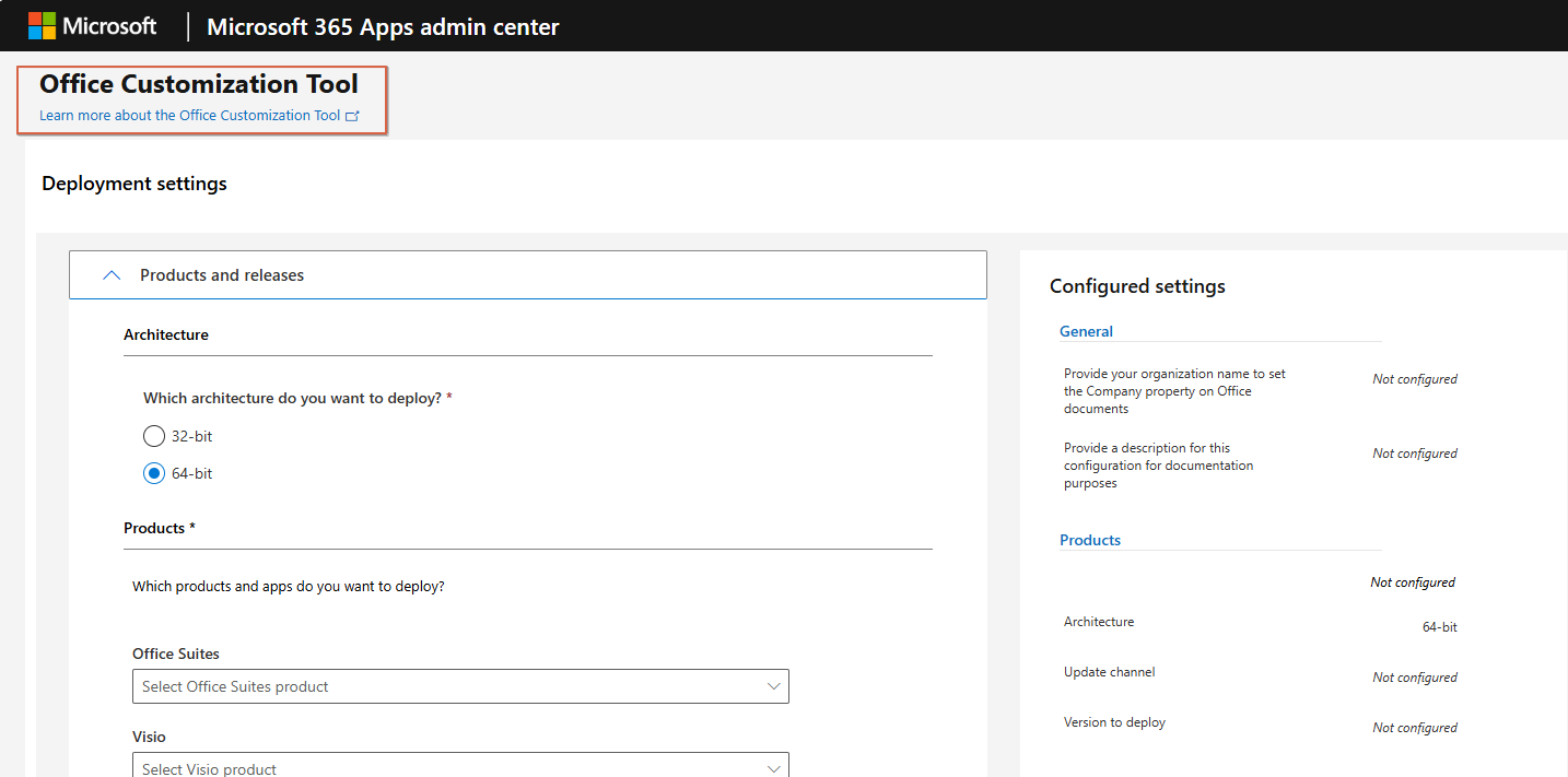 b. Office Customization Tool - Microsoft 365 Apps admin center