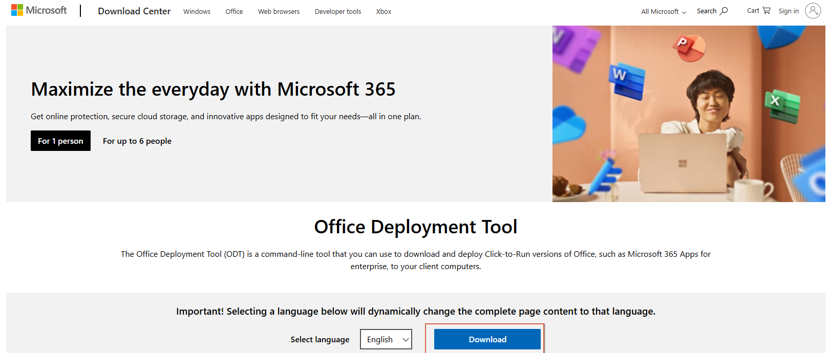 a. Download Office Deployment Tool from Official Microsoft Download Center (Deployment 툴 다운로드)