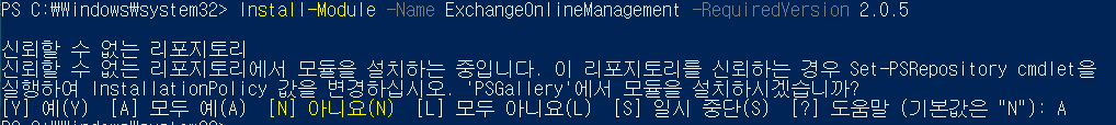명령어: Install-Module -Name ExchangeOnlineManagement