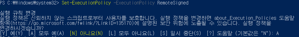 명령어Set-ExecutionPolicy -ExecutionPolicy RemoteSigned