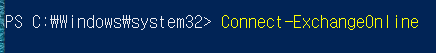 2. Powershell을 실행한 후에는 Exchange Online에 연결하여 작업이 필요합니다. (아래 명령어 입력)
