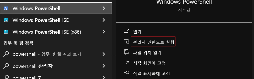 1. 먼저 Powershell을 관리자 권한으로 실행합니다.